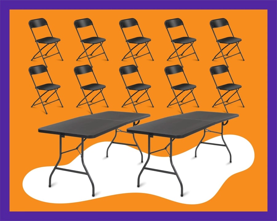 Planning a backyard party or any event where seating is key? Look no further! Our Table and Chair Pack is the perfect solution for all your gathering needs. This package includes 2 heavy-duty, 6ft black folding tables and 16 sturdy chairs, ensuring your guests are comfortably seated and your event runs smoothly.